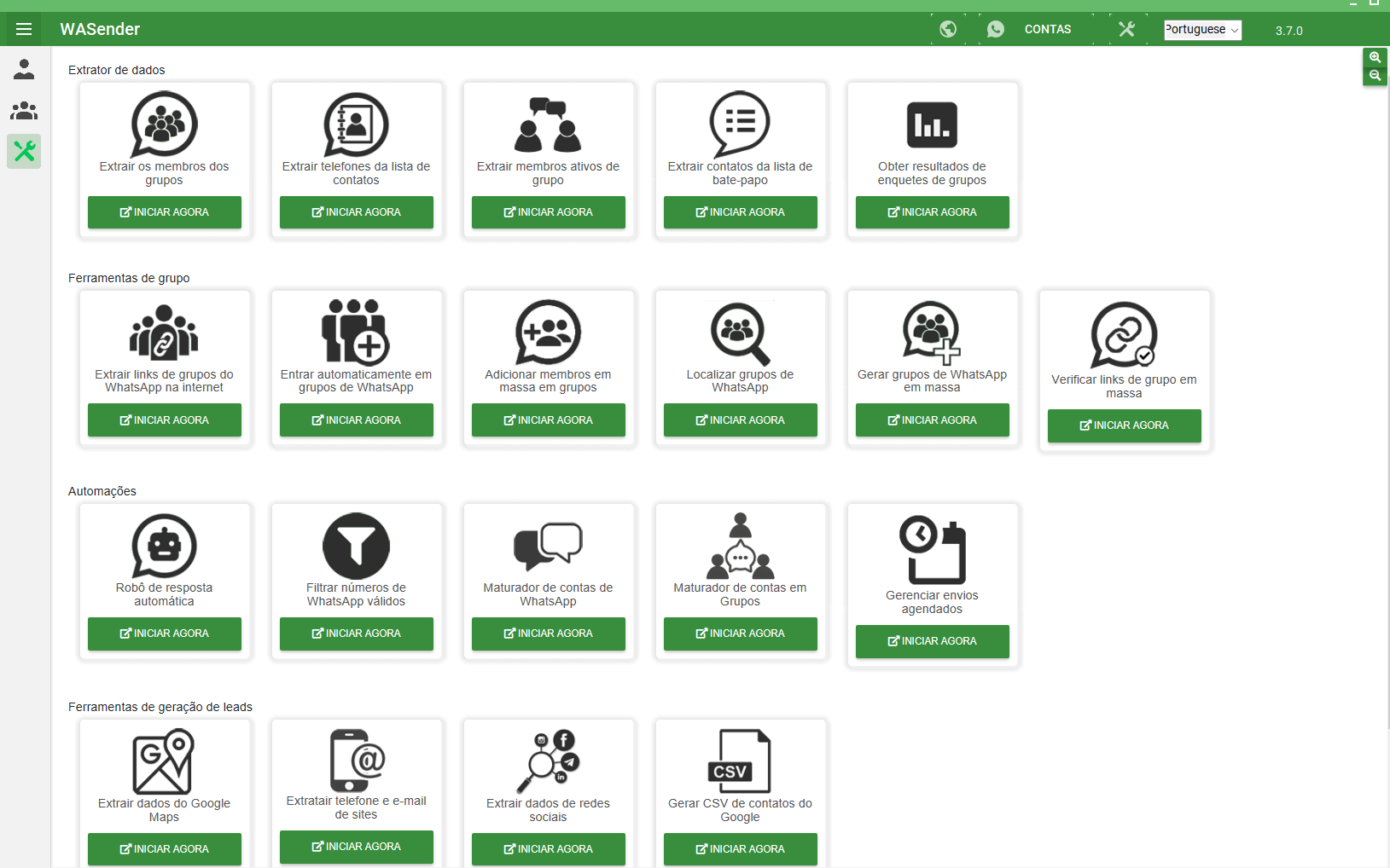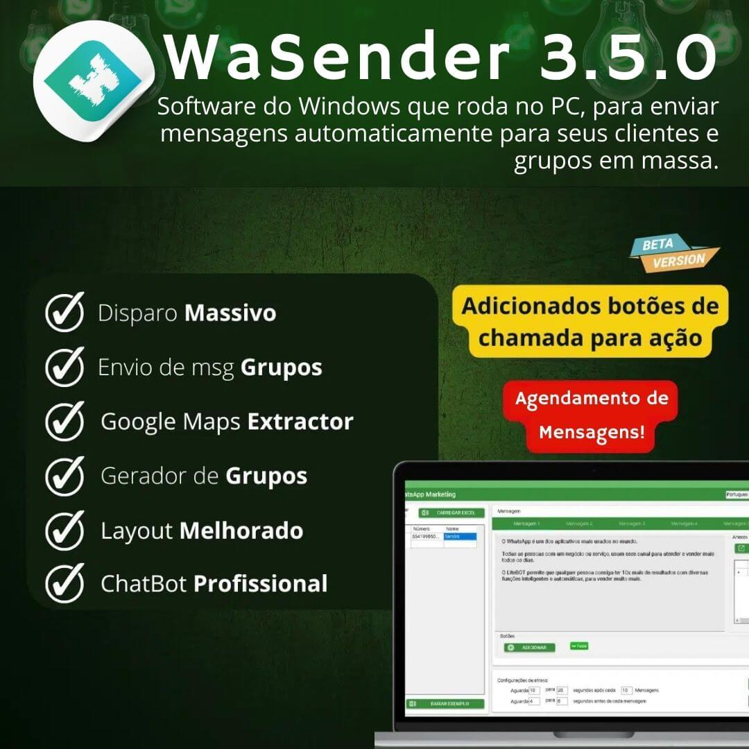 WaSender – É um software do Windows que roda no PC, uma solução para enviar mensagens automaticamente para seus clientes e grupos em massa.